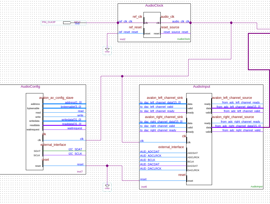 Now, I guess i got the output right. But the input - no idea. Most of the outputs of AudioConfig are not even present as input in AudioInput IP, or the audio chip that lies underneath it. I know the physical audio chip is configured via I2C, but I see no I2C inputs in the AudioInput IP.