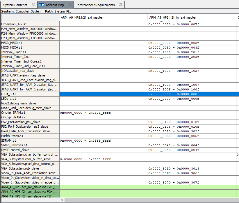 I am now experimenting with adding new PIO components in platform designer to use these with my program. Basically, I made a copy of the De1-SoC computer, and added a duplicate LED PIO component, with what seems to be all the necessary connections and memory addresses. I added this component to the system in Platform Designer, edited the memory addresses, generated HDL, went to my top level design, added the new .qip file, edited my top level design file to assign the LED's to the new LED PIO component over the old, compiled this code to generate the .sof file, which was successful. Then, I went to the monitor program, downloaded the system from the new .sof file, edited my code for the LEDs to use the new memory address of the new PIO LED component, and loaded and compiled my code.