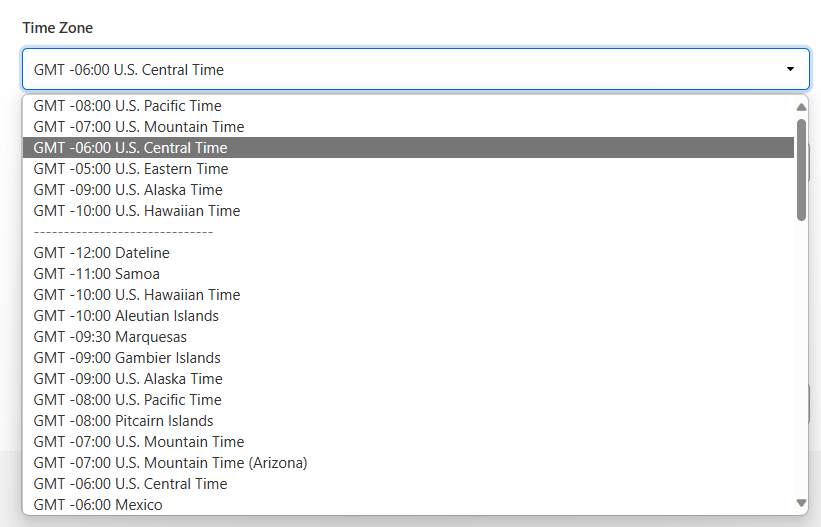 - Choose your preferred time zone from the drop down