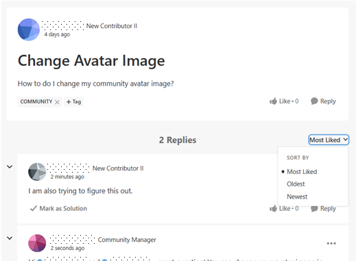 - You will be able to sort a thread by Most Liked, Oldest or Newest.