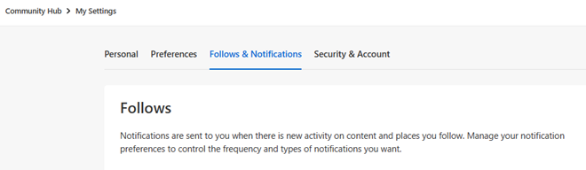 Follows ensure you receive automated messages about the most recent posts and replies that interest you. There are multiple ways in which you can follow content and boards in the community.