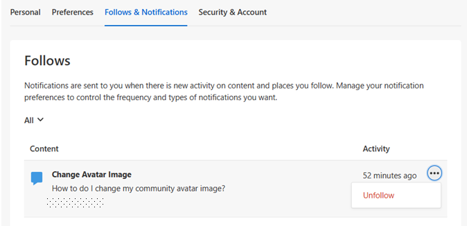 From the Follows & Notifications tab, you can manage your follows, including your notification settings, and your email notification format.