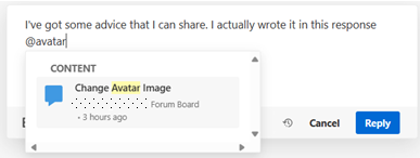 @mentions allows users to call out other community members and community content within a post. This is helpful for responding to a forum topic when you want to link it to another post that includes helpful information.