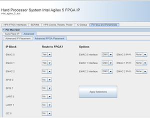 Hi, I try to enable the Error Detection and Correction (EDAC) for EMAC1 on my Arria 10 SoC device. I found the device tree entries for EMAC0 in the Linux kernel sources: emac0-rx-ecc@ff8c0800 { compatible = "altr,socfpga-eth-mac-ecc"; reg = <0xff8c0800 0x400>; altr,ecc-parent = <&gmac0>; interrupts = <4 IRQ_TYPE_LEVEL_HIGH>, <36 IRQ_TYPE_LEVEL_HIGH>; }; emac0-tx-ecc@ff8c0c00 { compatible = "altr,socfpga-eth-mac-ecc"; reg = <0xff8c0c00 0x400>; altr,ecc-parent = <&gmac0>; interrupts = <5 IRQ_TYPE_LEVEL_HIGH>, <37 IRQ_TYPE_LEVEL_HIGH>; }; Where do I find the interrupts used for EMAC1? Is there any documentation available? And does it require some changes in my Quartus project as well or is it fully covered by the Linux drivers?2.7KViews0likes9CommentsAgilex5 EMAC to Fabric