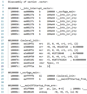 Hi, I try to build a bare metal app for the Arria V SoC devkit using Arm Compiler 6/5 (DS-5 built in) and load it from the QSPI into the SDRAM (on the devkit without debugger). The app is never executed. I followed several guides, All resulted with working preloader that doesn't load the app: 1. Link: https://community.intel.com/t5/Intel-SoC-FPGA-Embedded/scatter-file-linker-script-and-preloader-integrations-for/m-p/1472491/emcs_t/S2h8ZW1haWx8dG9waWNfc3Vic2NyaXB0aW9ufExHME5POUsyNERNRFVVfDE0NzI0OTF8U1VCU0NSSVBUSU9OU3xoSw#M1882 2. asdf soc hands baremetal (attached) 3. guide found in this forum (attached) 1 | My Environment - Windows 10 - SoC EDS 18.1.0.625 - DS-5 Ultimate Edition, Version: 5.29.1 (installed with SoC EDS) - Quartus Prime 18.1 (including Quartus Prime Programmer) 2 | Example Projects For comparison I used two example projects: 1. Altera-SoCFPGA-HardwareLib-Unhosted-AV-GNU - Link: (attached to this post) - Result: The built app is loaded successfully with debugger and without it (SoC only) 2. Altera-SoCFPGA-HardwareLib-Timer-AV-ARMCC - Link: (attached to this post) - Result: The app is loaded only when using debugger. I wish to load it without debugger. 3 | 1. I used the Arria V SoC GHRD handoff folder to build the preloader: - Checked SDRAM scrub - Unchecked watchdog interrupt and any boot device other than the QSPI - Next image address is 0x60000) I see the preloader UART prints. I use the same preloader with both images (only the GCC built image is executed without debugger) 2. In both cases I flash the bare metal app into the QSPI starting from address 0x60000: quartus_hps -c 1 -o PV -a 0x60000 [image_name].bin 3. I don’t know if its matters, but in project (2.1) the resulted ELF is converted to .bin using objcopy. In project (2.2) its converted using fromelf. In both cases I use the same mkimage command: mkimage -A arm -T standalone -C none -a [SDRAM_START_ADDR] -e 0 -n "baremetal_image" -d [name].bin [image_name].bin 4. The [SDRAM_START_ADDR] is different in both projects. In (2.2) its provided in the scatter file, in (2.1) its provided in the linker script. I did noticed a comment in the GCC project (2.1) linker script: MEMORY { boot_rom (rx) : ORIGIN = 0xfffd0000, LENGTH = 64K oc_ram (rwx) : ORIGIN = 0xffff0000, LENGTH = 64K /* Need to have 64bytes available before start of program, to store the mkimage header */ ram (rwx) : ORIGIN = 0x100000 + 0x40, LENGTH = 1023M - 0x40 } "Need to have 64bytes available before start of program, to store the mkimage header" I'm not sure this space exists in project (2.2) as well. Could this be the reason for my problem? 5. I looked at each project built ELF "Image entry point". In both cases it points to a valid place (proj 2.1 – cs3_reset , proj 2.2 – alt_interrupt_vector). Both lead to main So I don't know what is the specific difference causing the GCC project (2.1) built image to be loaded and work properly as opposed to the ARM project (2.2) built image.4.2KViews0likes14CommentsRiscFree Cyclone V Example Project Building Failed