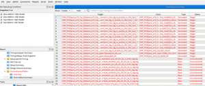 Hello Intel Team, In our design, we instantiated eight 10G F-Tile Ethernet Hard IPs (including ANLT) using the VHDL "GENERATE" construct. During timing analysis, we are encountering setup and hold violations on the "TX_CLKOUT" path of the F-Tile transceivers. The "REPORT_CLOCKS" command shows that these 8 clocks are being generated with a frequency of 402.83 MHz under the following names: gen_eth[0].proc_ftile_eth_hardip|eth_f_0|tx_clkout|ch23 gen_eth[1].proc_ftile_eth_hardip|eth_f_0|tx_clkout|ch22 ... gen_eth[7].proc_ftile_eth_hardip|eth_f_0|tx_clkout|ch16 The corresponding master clocks are: gen_eth[0].proc_ftile_eth_hardip|eth_f_0|tx_pld_pcs_clk_reg|ch23 TX_CLKOUT clocks are asynchronous to each other and operate independently. Therefore, we attempted to exclude them from timing analysis using the "set_clock_groups -asynchronous" constraint, like this: set_clock_groups -asynchronous \ -group { [get_clocks {gen_eth[0].proc_ftile_eth_hardip|eth_f_0|tx_clkout|ch23}] } \ -group { [get_clocks {gen_eth[1].proc_ftile_eth_hardip|eth_f_0|tx_clkout|ch22}] } \ -group { [get_clocks {gen_eth[2].proc_ftile_eth_hardip|eth_f_0|tx_clkout|ch21}] } \ -group { [get_clocks {gen_eth[3].proc_ftile_eth_hardip|eth_f_0|tx_clkout|ch20}] } \ -group { [get_clocks {gen_eth[4].proc_ftile_eth_hardip|eth_f_0|tx_clkout|ch19}] } \ -group { [get_clocks {gen_eth[5].proc_ftile_eth_hardip|eth_f_0|tx_clkout|ch18}] } \ -group { [get_clocks {gen_eth[6].proc_ftile_eth_hardip|eth_f_0|tx_clkout|ch17}] } \ -group { [get_clocks {gen_eth[7].proc_ftile_eth_hardip|eth_f_0|tx_clkout|ch16}] } However, this approach results in the following errors: - Warning(20314): Invalid collection filter: [get_clocks {gen_eth[0].proc...}] - Warning(332049): Ignored set_clocks_group: Argument -group with value could not match any element of the type clk. - Warning(332049): Argument -group is not an obejct ID. I’ve tried multiple approaches, get_nets, Get_pins, also using wildcards and "create_generated_clock", but nothing has resolved the issue. According to my understanding, a "create_generated_clock" constraint shouldn't be necessary, since these clocks are automatically generated by Quartus. When inspecting the design in the Timing Analyzer using "get_clocks *ch23, the clock names appear to be internally resolved to autogenerated IDs like "_co15660". However, these IDs are not stable and may change with each compile (fit), which makes them unsuitable for constraints. At this point, I am running out of ideas. Question: How can I properly constraint or eliminate the setup and hold violations on the eight "TX_CLKout" clocks generated by Quartus in the F-Tile Ethernet Hard IPs? Should I just use "Set_False_Path"? I used the "Generate" command in VHDL to instantiate the 8 F-Tile ETH Hard IP + 8 ANLT. Could be this a problem ? kind regards Jacob1.1KViews0likes3CommentsQuartus Prime Pro 25.1.0 Reports Unconstrained Paths in Cyclone 10GX PCIe Hard IP