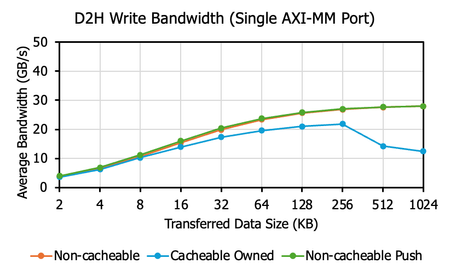 Device: Agilex 7 I-Series AGI027 Software: Quartus Prime Pro 24.3 IP Core: CXL Type 2 IP Issue Description: We are attempting to increase CXL Device-to-Host (D2H) write bandwidth by utilizing both CAFU AXI-MM ports (port 0 and port 1) provided in the CXL Type 2 IP design example. However, our measurements show that enabling both AXI ports does not improve bandwidth as expected. For Non-cacheable writes, bandwidth remains unchanged when moving from one port to two ports. For Cacheable Owned writes, bandwidth decreases when using two ports. Please refer to the figures blow for detailed results. We are using the design example configured with two DCOH slices. To avoid potential DCOH contention, we've implemented address interleaving such that: - AXI port 0 only accesses addresses corresponding to "even number × 64B" - AXI port 1 only accesses addresses corresponding to "odd number × 64B" Despite this, no bandwidth improvement is observed for either Non-cacheable or Cacheable Owned traffic. Additionally, the non-cacheable bandwidth curve remains almost identical regardless of whether one or both AXI ports are used. This suggests that the exercised hardware path may contain a bottleneck or contention point within (either soft or hard part of) the CXL Type-2 IP. We would like to understand how to resolve this bandwidth limitation. If it cannot be improved, we would appreciate clarification on the underlying cause of this behavior. Thank you for your time and support.20Views0likes0CommentsCXL IP User Guide redirect to intel.com and access denied.