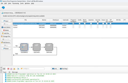 To boot an Agilex 7 (HPS boot first), the SDM QSPI is flashed with 4 redundant images that are 512KB (max) each. As I understand, the SDM copies the SPL into the HPS on-chip RAM, then releases the HPS reset. This works fine. On the HPS console, I can see the U-Boot SPL prints. However, if I corrupt the first image by erasing the first 512KB of QSPI, the device does not boot. How can I get the SDM to try the second image if the first image is bad, and so on?3.4KViews0likes9CommentsHow to program FPGA in Arria 10 HPS?