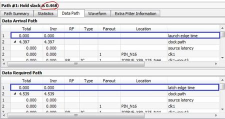 I'm having trouble understanding how to calculate Setup slack and Hold slack correctly. According to the Intel Quartus Timing Analysis manual, Setup slack is calculated as Data Required Time (Setup) minus Data Arrival Time, and Hold slack is calculated as Data Arrival Time minus Data Required Time (Hold). However, no matter how I calculate it, my results never seem to match up. I've been spending a lot of time trying to figure out the concept of hold and setup, but it's been challenging. Is it normal to find these concepts difficult to grasp? Can someone explain the correct algorithm for calculating Setup slack and Hold slack? I've referred to the following articles as my reference: https://www.intel.com/content/www/us/en/support/programmable/support-resources/design-software/user-guides.html I would greatly appreciate any help or insights. Thank you in advan ce!Solved7.6KViews0likes4CommentsIntel® FPGA Technical Training for every public users