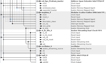 Hi, I am trying to connect the AV DC FIFO as followed: The idea being that the main clock is running at 100MHz and is connected to the mSGDMA which reads from the FIFO, and iopll is outputting a 200MHz clock and is connected to the oscillator which writes to the FIFO. The above design compiles, but on boot I am given this error: ..Error sending bitstream! Command 'load' failed: Error -110 FPGA not ready. Bridge reset aborted! Note that this design works when there is no PLL, and everything is clocked from the same source (although this causes boot to take a long time). I have looked through the docs here however these docs seems not to match the IP interfaces. The docs here here seem to match but don't explain the interface. Could someone help point me in the correct direction? Thanks!Solved4KViews0likes14Comments