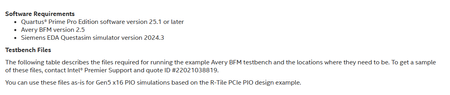 Hello, our research team is working on PCIe controller with Agilex-7 M Series. We are using R-Tile Avalon® Streaming Intel® FPGA IP for PCI Express. According to Using the Avery BFM for R-Tile PCI Express Gen5 Simulations in R-Tile Avalon® Streaming Intel® FPGA IP for PCI Express User Guide, (https://www.intel.com/content/www/us/en/docs/programmable/683501/25-1-1/overview-59246.html) Testbench files for Avery BFM is supported. (Figure below, link above) Could you provide us testbench sample for Avery simulation?48Views0likes5CommentsHow to implement PCIE hard IP for Cyclone IV GX