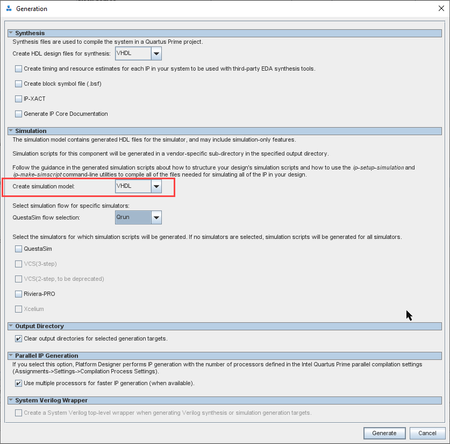 Following Stratix® 10 Embedded Memory User Guide (2025.07.24) chapter 2.11.6 independent clock enables are supported for read/write clock mode input/output clock mode I start a "RAM 2-port" IP generation. I select "one read/write port" in the general tab and "dual clock use separate read and write clock" in the "Clks/Rd,Byte En" tab. Now I enable the clock enables in the "Reg/Clkens/Aclrs" tab "use clock for read input register" as well as same for "output registers". IP Parameter window immediuately shows an error: Error: testram.ram_2port_0: Clock enable for read input registers is unavailable while using 'Dual clock: use separate read and write clocks' for Stratix 10 device family. This is verified with Quartus Pro 18.1 and 25.3. Is this a bug of the software or the documentation?54Views0likes4CommentsQSYS 25.3pro failed to generate VHDL simulation files for altera_remote_update_core