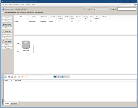 Hardware Synology Board with 5M80ZE64C5N PL-USB Blaster RCN Rev C Software Win 10 Programmer Standalone Quartus Prime 17.1.1-593 ( all Versions above have a Bug with File save after eamine ) Device selected 5M80ZE64 selectable Boxes ( dark grey ) : Blank check - examine - erase not selectable Boxes ( light grey ) : Programm - verify - security Bit - ISP Clamp ( exactly same on Brand new chip ) Examine successful 100% File saved USM and CFM appear Verify USM pass Verify CFM Fail Message : 209048 verfy failure on devive number 1 209012 Operation failed what am i doing wrong ?9.6KViews0likes38CommentsProgramming Altera Max EPM3256AQC208-10N PQFP-208