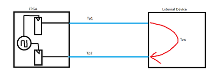 Hello, I am using a Cyclone V device and have another external device that is supposed to take input from the FPGA and return a value to the FPGA where it is then latched. I have attached an diagram of the scenario below. What is the correct timing constraint to apply to properly constrain this? I was thinking about set_input_delay and set_output_delay, but I'm not sure how to extrapolate the required values since the input delay relies on the FPGA's internal propagation delay of the output and vice versa. That can't happen because those internal propagation delays are not known until fitting. Thank you4.6KViews0likes15CommentsTypical timing analysis cyclone V (on top of existing slow/fast)?