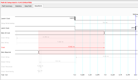 Hi all, I have a design where I generate an SPI clock and send some data over the slave. The slave is an ADC with its own setup/hold time constraints. In these constraints, the slave data input SDI has constraints with respect to the SCLK, but I'm not sure how to properly constraint that. What I did so far is that I constrainted the SCLK on its own as if it's a data output of the FPGA and then constraint the MOSI with referencing the SCLK. The syntax I used in the sdc file is added below. # main clock of the FPGA create_clock -name {clk} -period 100MHz [get_ports {clk}] # Specify generated clock from PLL (PLL output is 100MHz) # set_instance_assignment -name corepll_inst|altpll_component|auto_generated|pll1 -to pll_inst # create_generated_clock -name {pll_clk} -source [get_pins pll_inst|clk[0]] -divide_by 1 # constraints for SCLK and MOSI set_output_delay -clock {corepll_inst|altpll_component|auto_generated|pll1|clk[0]} -max 3 [get_ports {SCLK1}] set_output_delay -clock {corepll_inst|altpll_component|auto_generated|pll1|clk[0]} -min -2 [get_ports {SCLK1}] set_output_delay -clock {corepll_inst|altpll_component|auto_generated|pll1|clk[0]} -reference_pin SCLK1 -max 5 [get_ports {MOSI1}] set_output_delay -clock {corepll_inst|altpll_component|auto_generated|pll1|clk[0]} -reference_pin SCLK1 -min -5 [get_ports {MOSI1}] What I observe in the Timing Analyzer is that the setup and hold times are not the only things when checking the timing analyzer. For the example that you can see on the snippet attached, I would expect that the data required for the setup time of SCLK1 would be only 3 ns far from the latch clock's posedge, where the cursor is. I'm almost sure that what I want to achieve does not match with the constraints I used, therefore I'd like to ask what I'm doing wrong or missing. Any help is much appreciated, CheersSolved8.9KViews0likes35CommentsConstraint for phase-shifted external clock (Specifying Clock Waveform Edges)