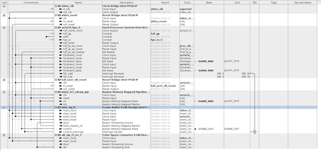 I have configured an FPGA design for my linux device that is displaying SDI and HMDI inputs. It was originally configured to receive YCbCr 4:2:2 video format. Since I am experiencing green spill on images when trying to chroma key, I am attempting to change the input data to RGBA. For a test, I have implemented a conversion into the FPGA that handles the RGB input from the frame buffer. I believe this conversion is correct because the color values come out as expected. FPGA Design Here: FB -> CSC -> CRS -> Output This is the same for all four mixers. I am using gstreamer to input the color bars pattern into the pipeline. (gst-launch-1.0 videotestsrc ! videoconvert ! video/x-raw,format=BGR,width=1920,height=1080 ! videoconvert ! filesink location="/dev/fb3") There are 4 frame buffers located at "/dev/fb0", "/dev/fb1", and so on. Basically the issue is these frame buffer's graphics are overlapping and changing the memory regions in the DTS file does not fix the issue: "gst-launch-1.0 videotestsrc ! videoconvert ! video/x-raw,format=BGR,width=1920,height=1080 ! videoconvert ! filesink location="/dev/fb0" "gst-launch-1.0 videotestsrc ! videoconvert ! video/x-raw,format=BGR,width=1920,height=1080 ! videoconvert ! filesink location="/dev/fb1" "gst-launch-1.0 videotestsrc ! videoconvert ! video/x-raw,format=BGR,width=1920,height=1080 ! videoconvert ! filesink location="/dev/fb3" I can even see the bottom portion of the color bars pattern when changing the height to 720. "gst-launch-1.0 videotestsrc ! videoconvert ! video/x-raw,format=BGR,width=1920,height=720 ! videoconvert ! filesink location="/dev/fb3" The drivers being used for the frame buffer is altvipfb.c and altvipfb2-plat.c Here is the DTS snippet of these frame buffer components and the boot logs where the frame buffers are initialized: DTS snippet Boot Logs The virtual address and length seen in these boot logs do not change at all when DTS changes are made. I also get this error when inputting a pipeline: If anyone could help me approach this issue it would be greatly appreciated. Thanks, Evan6.1KViews0likes22CommentsNo User Manual for Terasic D8M-FMC (NDA) ?